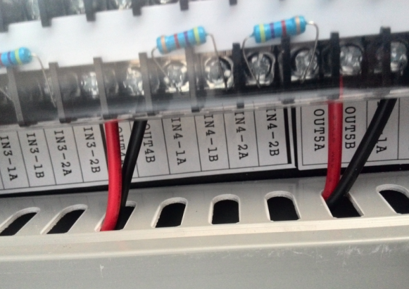 輸出模塊的音源線(AC120V)嚴(yán)禁與二總線(DC28V)混接,會(huì)造成設(shè)備燒損。