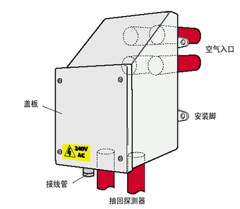 如果沒有維修空間,加熱器和GST空氣采樣式感煙火災探測報警器都可以安裝在建筑物墻上的避免氣候影響的防護箱內。