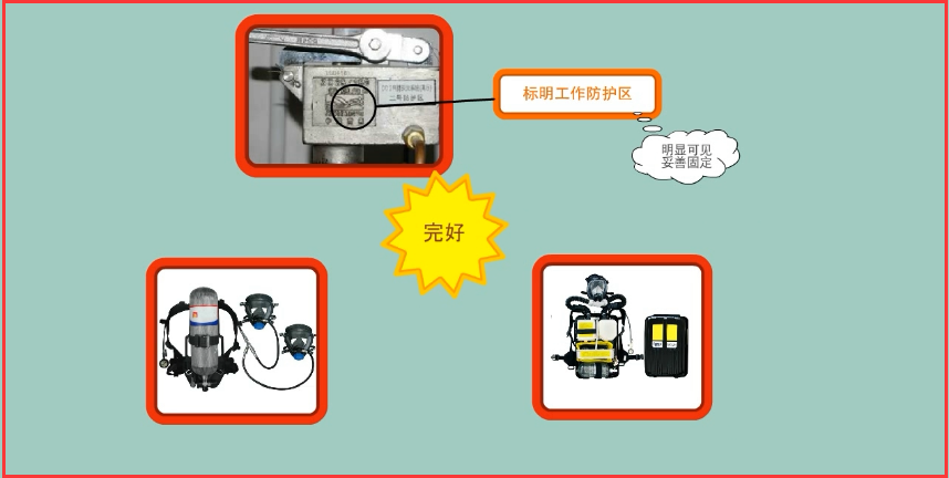 4、防護區外專用的空氣呼吸器或氧氣呼吸器是否完好;
