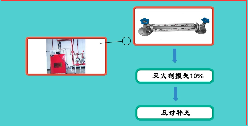 (1)對低壓二氧化碳滅火系統儲存裝置的液位計進行檢查,滅火劑損失10%時應及時補充。