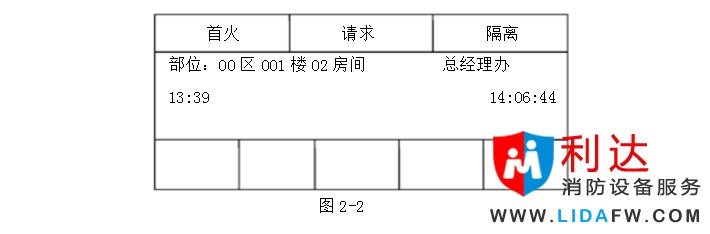 本菜單下面一行五個區(qū)域分別對應(yīng)其下面貼膜上的各內(nèi)容。區(qū)為火警信息,第二區(qū)為命令信息,第三區(qū)為模塊回答信息等。各區(qū)域數(shù)字中行為事件總數(shù),第二行為事件當(dāng)前地址。當(dāng)某區(qū)域有信息時,按與顯示區(qū)域中文相對應(yīng)的按鍵,相應(yīng)區(qū)域的數(shù)字信息便反顯,此時中間“部位”欄中顯示的便是光標(biāo)處設(shè)備的具體信息。部位左下的時間為事件發(fā)生時的時間。