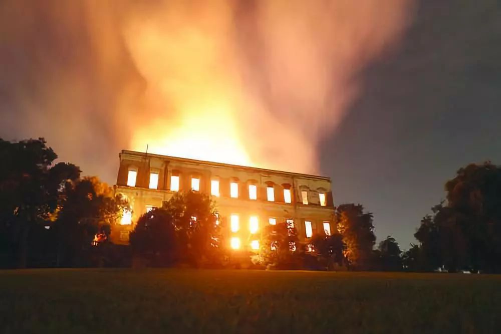2018年9月2日晚,位于巴西里約熱內盧市北區(qū)、擁有2000萬件藏品的博物館發(fā)生火災。由于火勢難以控制,所有藏品幾乎被燒毀,巴西總統特梅爾發(fā)表聲明說,博物館藏品被燒毀對巴西來說是不可估量的損失,200年的研究和知識就這樣失去了。帝國時代王室居住的建筑遭受損失,歷史遭受的損失更是無法計算。這對所有巴西人來說都是“悲傷的一天”。