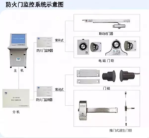 防火門監控系統是控制門的開和關,為了減少火災所造成的損失。一般組成是有防火門監控器主機,防火門監控器分機,防火門聯動閉門器,防火門電磁釋放器,和智能監控門磁等等組成,根據不同的需要,組成部分細微不同,有相應的質量檢測標準,簡稱“國標”。  防火門監控系統具備的功能應符合下列要求